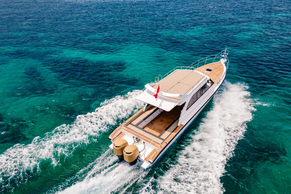 Your adventure begins at our own marina in Serangan, Bali. Enjoy a stylish waterfront lounge with a bar, chill zone, showers, and a souvenir shop—everything you need before setting sail.