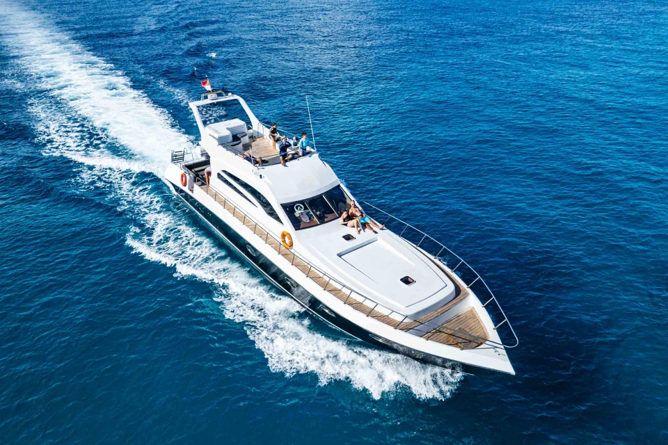 Your adventure begins at our own marina in Serangan, Bali. Enjoy a stylish waterfront lounge with a bar, chill zone, showers, and a souvenir shop—everything you need before setting sail.