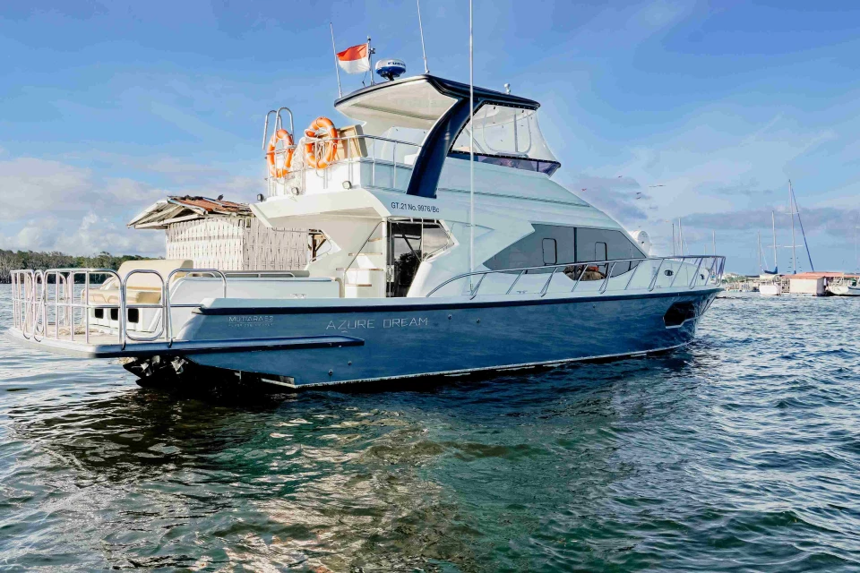Your adventure begins at our own marina in Serangan, Bali. Enjoy a stylish waterfront lounge with a bar, chill zone, showers, and a souvenir shop—everything you need before setting sail.