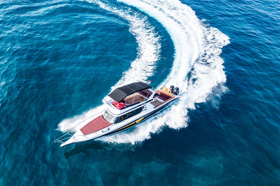 Your adventure begins at our own marina in Serangan, Bali. Enjoy a stylish waterfront lounge with a bar, chill zone, showers, and a souvenir shop—everything you need before setting sail.