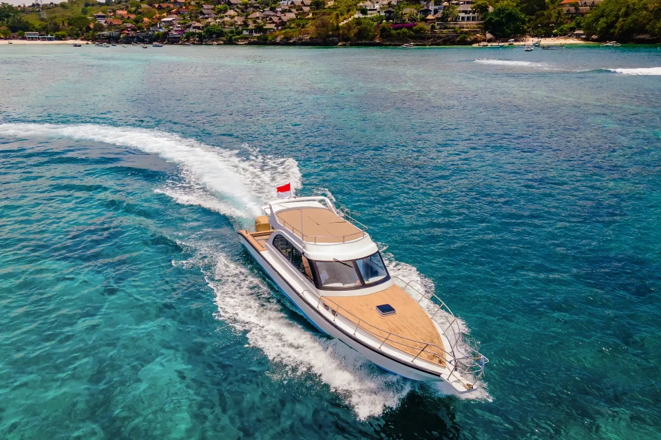 Your adventure begins at our own marina in Serangan, Bali. Enjoy a stylish waterfront lounge with a bar, chill zone, showers, and a souvenir shop—everything you need before setting sail.