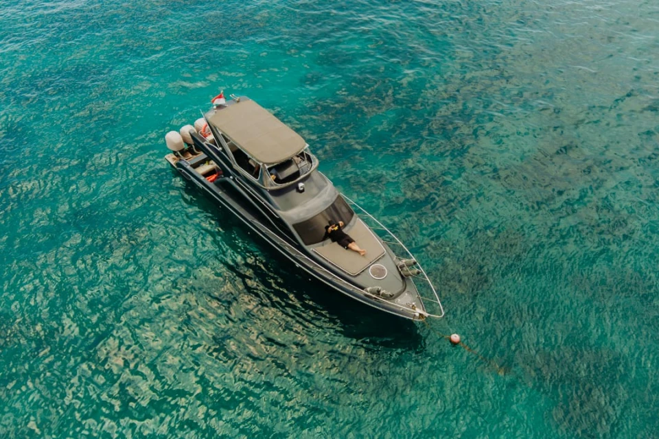 Your adventure begins at our own marina in Serangan, Bali. Enjoy a stylish waterfront lounge with a bar, chill zone, showers, and a souvenir shop—everything you need before setting sail.